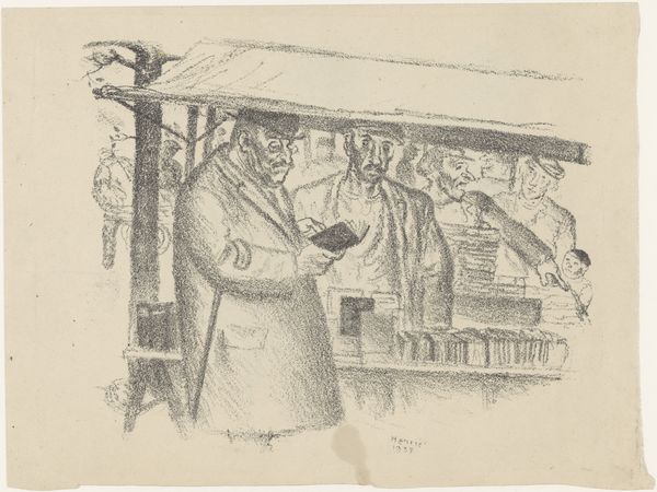 Curator: This print by Johan Michaël Schmidt Crans, created around 1867, is titled "Spotprent op actuele politieke kwesties, 1868," or roughly translated, "Cartoon on Current Political Issues." It’s made with engraving, pen, and ink. Editor: My first impression is controlled chaos. All these lines, almost scribbled in places, give it a frenetic energy, like something urgent is being conveyed. It also feels darkly funny, with a bit of a sinister edge, if I'm being honest. Curator: Exactly! The seemingly rushed execution is very much by design here. Schmidt Crans, a very prolific artist, was responding directly to the shifting political landscape of the Netherlands at this time. Notice the crowded scene within the carriage. Editor: Yes! It’s overloaded. The titles on all those packages—"Fragile," "Neutral School," "Congo Tea"—they read like a recipe for disaster. The artist clearly seems to think so. The combination of recognizable figures of that time as coach driver with these references paints a very sharp satirical critique. Curator: Absolutely. Consider the social climate; there were ongoing debates surrounding education, colonial policies—all issues reflected in these labeled "gifts." Sinterklaas, normally associated with generosity, is here depicted as steering a wagon filled with questionable commodities. Editor: And it really resonates even now. Even without knowing the specifics, the imagery feels relevant to the messiness of modern politics. It speaks to a feeling of things being out of control, almost teetering on the edge. There’s a definite sardonic feel to the way figures are represented. Curator: This sardonic representation is indeed what helps convey Schmidt Crans' position so potently. And that, of course, would have created a vital moment of public and even private dialogue at that moment in history, perhaps in the comfort of one's own home. Editor: Seeing art used as a weapon, even a humorous one, is really interesting. You gain these glimpses into societal issues from centuries ago; in some ways it still very accurately paints today’s dynamics. The fact that humor allows hard things to be broached creates such a fantastic impact, in this drawing as in many others. Curator: Indeed. A small, densely layered cartoon that delivers lasting resonances.