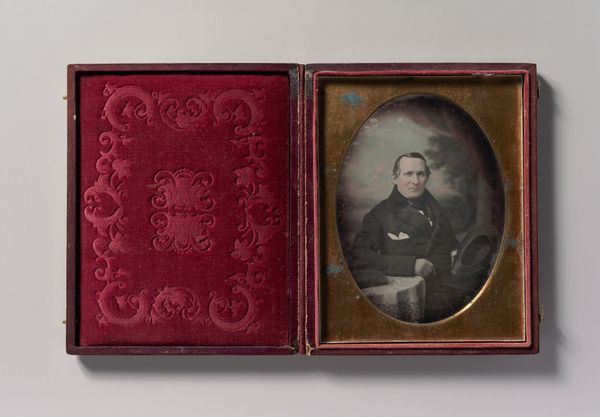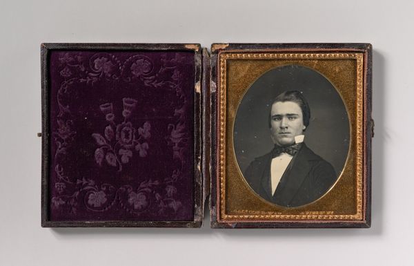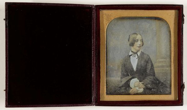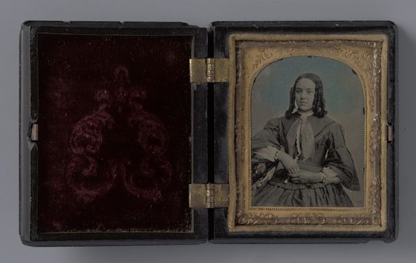 This ‘Untitled’ portrait is a poignant example of nineteenth-century photography, encased in a hinged case. The anonymous artist captured the subject in a style that was becoming increasingly accessible to the middle class. During this era, portraiture moved beyond the exclusive domain of the wealthy, as photographic techniques democratized image-making. The woman’s modest attire and plain hairstyle suggest a life of practicality and perhaps quiet dignity, reflective of Victorian ideals of womanhood. Consider how this image contrasts with more opulent portraits of the time; it offers a glimpse into the lives of those often unseen in grand narratives. The ornate case, lined with plush velvet, indicates the value placed on this image. Was it a memento of a loved one, or a personal statement of identity? This portrait invites us to reflect on the intersection of gender, class, and representation in an era of immense social change, and on the enduring human need to capture and preserve our image.