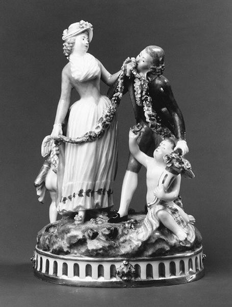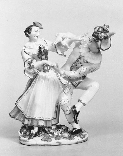 Editor: Here we have "Two Children in Turkish Costume," a porcelain sculpture from the Höchst Manufactory, made between 1765 and 1775. I'm struck by how these miniature figures are staged. It's so interesting to consider the representation of the “exotic” during that era. What story do you think this sculpture is trying to tell us? Curator: It’s a great observation about the staging. These figurines reflect the 18th-century European fascination with the Ottoman Empire, part of a broader trend called "Turquerie." The Rococo period was steeped in social display. Porcelain, like this, was collected and displayed to project refinement. Who *was* consuming and circulating these images and why? Editor: So, it wasn’t just aesthetic. Displaying these figurines communicated something about the collector, like an understanding or an appreciation of Turkish culture, or a sign of cosmopolitanism, maybe? Curator: Exactly. It was less about genuine understanding and more about constructing a persona. The figures, placed within drawing rooms and cabinets, served as conversation starters and symbols of wealth and worldliness. How do you see this kind of representation influencing modern views on cultural exchange? Editor: It feels like the gaze is still primarily a Western one. We still consume art from other cultures often without deep engagement or critical reflection on the power dynamics involved. This piece kind of foreshadows that continued issue. Curator: Precisely! And appreciating that connection from the 18th century until now requires critical work. Hopefully, thinking about art in terms of historical and contemporary social power helps give you language to analyze images across the board. Editor: Definitely, looking at "Two Children in Turkish Costume" in this light, not just as a charming tableau but as a social object, has given me a much richer perspective. Thank you. Curator: My pleasure! It's all about interrogating those power dynamics embedded in the imagery, no matter how delicate the porcelain.