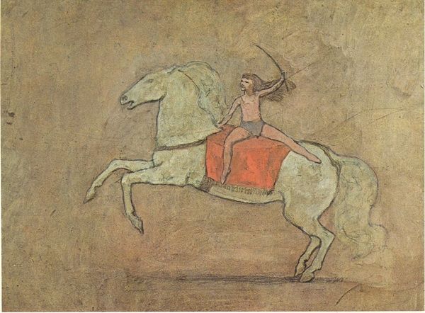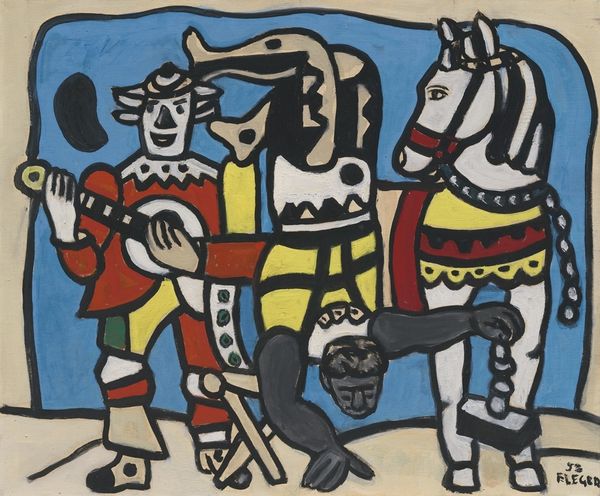 Oscar Dominguez made this painting, Corrida II, with oil on canvas. It’s all sharp angles and bold colours, like he's trying to pin down the frantic energy of a bullfight in one still image. The paint here is applied in flat planes that give it almost a stained-glass feel. There's a real emphasis on line, which boldly defines each form and gives a sense of structure to the whole composition. Look at the bull's back, how it curves with tension. It’s a bit like Picasso, but with an added punch of graphic clarity. I love how Dominguez simplifies everything down to its basic shapes, but doesn't lose the drama. The matador stands to the side, a splash of bright red and yellow against the earthy tones of the arena. It’s like he’s frozen a moment of high tension, and challenged us to figure out what happens next. It is a conversation between the conscious and unconscious minds.