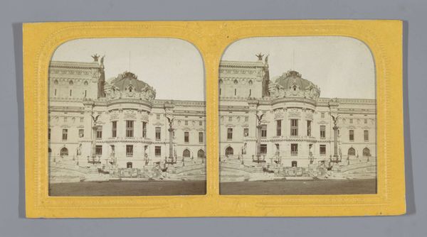 This is a stereograph of the Louvre in Paris, made by Charles Dauvois using a photographic process. It’s a double image mounted on card stock, designed to give a sense of three-dimensionality when viewed through a special device. The stereograph was a wildly popular format in the 19th century. It democratized image-making, bringing views of the world to middle-class audiences. But it was also deeply connected to industrial modes of production. Chemical processes rendered in these images required factories and distribution networks, and of course, the images they produced often celebrated the modern world. This view of the Louvre makes it appear as a majestic achievement. But it also evokes the many hands – from stonecutters to those involved in the photographic trade – that made the building, and this image of it, possible. The image asks us to consider the many people involved in the production process and the way that these processes have imbued the artwork with social or cultural significance.