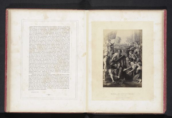 Curator: What strikes me immediately about this etching is its dynamism. The upward surge of figures and the billowing clouds create such a strong sense of ascension. Editor: Indeed. The print is a reproduction of Raphael’s depiction of the vision of Ezekiel, created sometime before 1861 by Gustav Schauer. We should contextualize it, noting how reproductive prints allowed Raphael’s work—originally a fresco—to circulate widely. What do you make of that original cultural impact? Curator: These reproduced images, like this engraving on paper, brought Raphael’s visions to a broader public, influencing artistic and religious imaginations for generations. Think about how this scene from Ezekiel, depicting God enthroned and surrounded by symbolic creatures, speaks to ideas of divine power. Editor: The four creatures – lion, eagle, ox, and angel – directly reflect symbols found across cultures denoting strength, royalty, sacrifice, and wisdom. Placing Ezekiel's vision in parallel to that imagery creates an interesting cultural fusion. It visually condenses power across belief systems. Curator: Absolutely, Gustav Schauer uses engraving techniques that convey Raphael’s figures’ texture and volume. In doing so, his reproduction makes it available, reshaping art appreciation and study during that period. Do we think that makes Schauer himself important, apart from merely being a copyist? Editor: Schauer’s craftsmanship clearly transmits artistic information, allowing these icons to be reproduced across many periods and beliefs. Consider how the political powers or movements use reproductions like these to associate with divine qualities, strength or truthfulness... How Raphael himself entered political arguments or became a representation for values through them. Curator: So this reproduction opens multiple doors for discussion: religious art's distribution, the role of the copyist, and the power of accessible imagery within broader cultural dialogues. Thank you. Editor: My pleasure, delving into that historical depth gave me such great context for understanding how the imagery holds meaning.