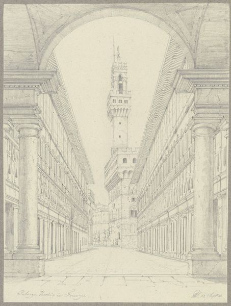 Martinus Rørbye made this watercolor and pencil drawing of Palazzo Massimo alle Colonne in Rome in 1835. The architectural study is rendered on paper, a widely available support, using accessible media. The paper's texture influences the appearance, adding depth to the stone surfaces. Rørbye's attention to detail is evident in the precise pencil work, capturing the play of light and shadow across the facade. The watercolor washes create a subtle range of tones, giving the structure a sense of volume and weight. The drawing’s material modesty reflects the artist’s pragmatic approach to documenting his travels. It is a far cry from the grand tradition of history painting, more akin to a craftsman's record of observations. Rørbye's choice of readily available materials and portable techniques allowed him to capture a fleeting moment in time, turning a seemingly ordinary scene into a lasting work of art. Ultimately, this piece challenges traditional distinctions between high art and craft.