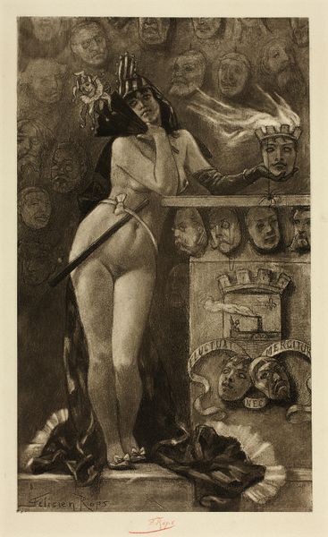Curator: Wow, this drawing gives me the chills, it is almost haunting. The artist depicts what looks like a dissection of the self. Editor: It is, indeed, quite striking! What we have here is Arnold Rönnebeck’s “Self-Portrait” from 1933, created using pencil. Rönnebeck was deeply involved in modernist circles, especially those surrounding Diego Rivera and Frida Kahlo in the US. Curator: Okay, that gives a new layer of insight to what at first appeared as a simple drawing, the work’s intensity hints to social circles with modernist values that challenged the conservative norms and oppression of the early twentieth century. The naked woman with what looks like tailor measures marked directly in her skin reminds me of our constant battle with unrealistic beauty standards. What do you think? Editor: I absolutely agree. Rönnebeck situates himself within the gaze, quite literally—peering out from the lower center. This isn’t merely about aesthetic self-representation, it’s an assertion of artistic control and an examination of how the artist, particularly a male artist, perceives and constructs the female form and self. The presence of tools, such as the plumb bob, traditionally employed to test verticality, and mannequin casts only deepen that reflection. The way the drawing lays bare both interior and exterior forms, like an anatomy textbook, reflects the anxieties surrounding identity during the interwar period, I think. Curator: The drawing feels deliberately unfinished, chaotic… fragmented, much like our own self-perception, never quite whole or resolved. It's a brutally honest reflection, if I might add! And this honest representation serves as a social commentary, the lack of any warm color is replaced with a monochrome aesthetic to reveal both vulnerability and calculated artistic construction. Editor: Right. The modernist exploration, in Rönnebeck's rendering, transforms the nude from an object of beauty into an object of intellectual scrutiny and a site of ideological contestation. The “Self-Portrait” captures this moment, demanding viewers acknowledge the complex layers of self-awareness and social critique embedded within a single image. Curator: Thank you! You gave me the precise tools to enjoy and unravel this hauntingly beautiful artwork even more. Editor: My pleasure. This piece reminds us of art's power to mirror, question, and sometimes even disturb our understanding of the self.