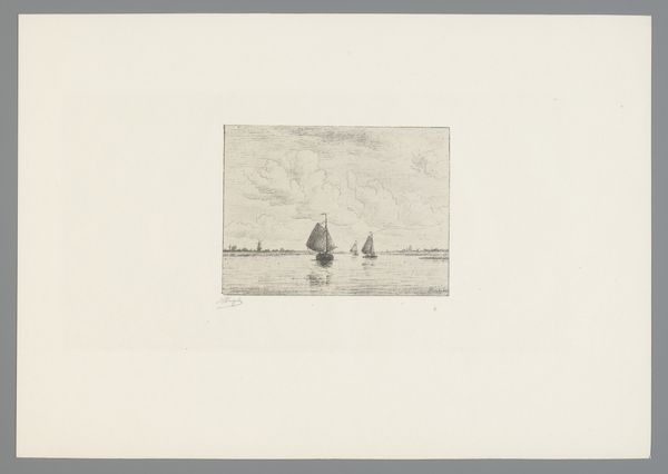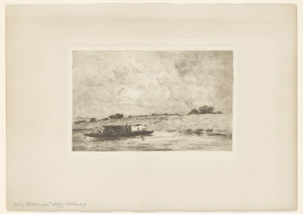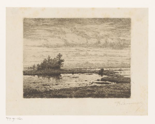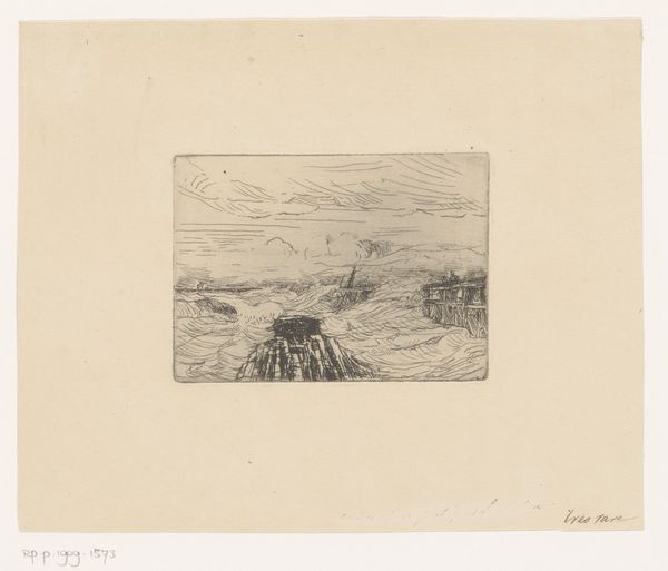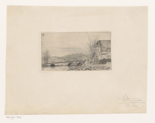 This etching, "Vaart met roeiboot in weidelandschap met molen" was created by Philip Zilcken, though the date remains unknown. You see it here in the Rijksmuseum. There’s something so quiet and contemplative about this piece, isn't there? It's all in these delicate, feathery lines, the way Zilcken coaxes depth and atmosphere out of what’s essentially a monochromatic palette. Look at the water – see how it shimmers? He achieves that with these tiny, almost imperceptible marks, like he’s whispering secrets onto the paper. And then there’s the windmill, this solid, grounded form, rendered with such fragile lines. It’s a beautiful contrast, kind of how we all feel sometimes, right? Solid but fragile. This reminds me of Whistler, you know, that same sense of quiet observation and a love of process. It's the kind of piece that invites you to slow down, breathe deep, and just be present with the image.