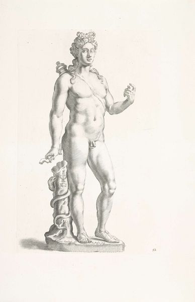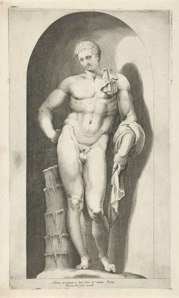 Editor: This drawing, "Hector," created sometime between 1793 and 1838 by Angelo Bertini, uses graphite and pencil to depict a standing nude male figure. The fine lines give it a sculptural quality, like a classical statue come to life. What catches your eye when you look at it? Curator: Well, considering Bertini's access to materials, graphite wasn't merely a readily available medium; it was an industrial product undergoing significant refinement during this period. We see here its use to represent the idealised male form. This Neoclassical fascination with the body connects to wider consumption patterns where even knowledge and artistic talent become a commodity. Editor: So you're saying the very choice of graphite is significant, tied to the economic landscape? Curator: Precisely! The artwork isn't just a reflection of classical ideals; it's also a product of the graphite industry. Who were the people who mined this graphite? How much labour did it require to grind it? We may romanticize about art, but at some point, it reflects a material production. Even his portrayal of a historical hero, Hector, it is a 'commodity fetish'; it distances the heroic figure from it original historical context and focuses our eye on the artist's technical accomplishment in representing this image. Editor: I hadn’t considered the role of industry and labour in this image of supposed ‘timeless’ beauty. I always thought graphite was…just graphite. Curator: These details about graphite processing are significant. Its widespread usage signifies an acceptance of mass-produced materials into fine art creation. Editor: That's such a different way of thinking about it! Now I see "Hector" not just as an image, but as a testament to both artistic skill and industrial advancements. Curator: Exactly. That makes "Hector," more than a simple historical representation; it's an intriguing cultural product with all its contradictions and hidden narratives about how goods become 'precious' and are made into icons.