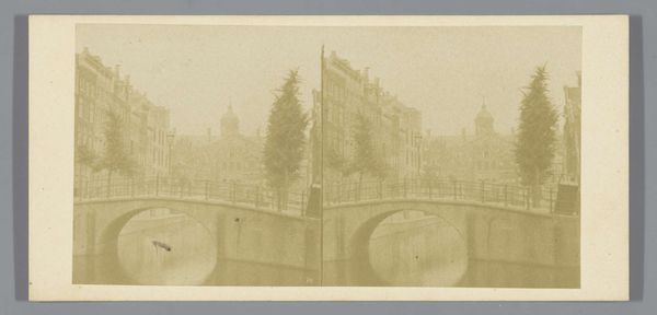 Curator: There's a wistful quality to this gelatin-silver print. It’s called "Spui in Den Haag," and it's believed to have been produced somewhere between 1896 and 1905. What grabs you first? Editor: It feels utterly still. Like the whole world is holding its breath. The tones are so soft, almost sepia, and there’s this sense of watching a world completely different from ours now. Is it just me or does it make you wanna’ hop in that little boat and float away? Curator: Indeed. Thinking about gelatin-silver prints, we need to remember how revolutionary this technology was for its time. Photography democratized image-making, bringing scenes from around the world to a wider public through mass production of images on paper. Editor: Democratizing art! It’s amazing to consider how radically photography shifted who could engage with visual representation. Plus, those gelatin-silver prints aged gracefully, becoming nostalgic in themselves. I wonder about the anonymous hand behind this specific print, what their story was, their hopes. Curator: That leads into thinking about labor of printing itself, who was producing these prints in which factory, which material supplier allowed the proliferation of such practices. Editor: It’s incredible! From the street vendor trying to make a living in frame to the technician working the darkroom, to even someone like us, viewing it today...We all become part of its story, like ripples from that little boat disturbing the still water. This small photograph is proof that we all carry and share a long history. Curator: Yes, let's not forget the ecological ramifications of printing, paper production, supply and demand for materials needed for image making at this time. I guess that concludes my materialist's point of view. Editor: Nicely put, my friend! And thank you. This tiny portal into the past has nudged my soul, making me rethink my connection to time, history, and all those countless unknown storytellers, those that are also viewers.