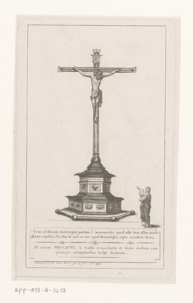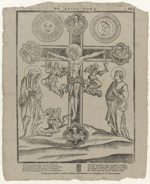 Editor: This is "Keizer Sigismund I met de rijksinsignia," a print dating anywhere from 1610 to 1699. It’s currently held at the Rijksmuseum. The detail in this engraving is just stunning! What immediately strikes me is the use of symbolic objects – what can you tell me about their significance in this work? Curator: That's a perceptive observation. Consider this image as a kind of visual archive, wouldn't you say? Look closely. What do the cross, the lance, and even Sigismund's crown suggest about the projection of power? Editor: I see… they all seem tied to the concept of divinely ordained rule, especially the cross right behind Sigismund. The lance reminds me of stories I have read on religious wars. Curator: Precisely. And that text beneath the symbols isn’t mere decoration. It tells a story, anchoring the image to a specific historical narrative, embedding memory, validating cultural power, wouldn't you say? The Holy Roman Emperor and objects were crucial to legitimation. Editor: So, the artist isn’t just creating a portrait, but also building an argument about legitimacy through shared visual language? The work also features angels. Why would they be featured here? Curator: A key element. Those cherubic figures are hardly neutral décor. Consider their conventional roles within religious iconography—they act as witnesses and vehicles, messengers and conveyors—adding another layer to the symbolic narrative, framing the history of the figure as divinely intertwined. Editor: It’s amazing how much a single image can hold when you unpack its symbols! Curator: Exactly. It invites us to read beyond the surface, seeing how images become powerful tools in shaping cultural memory.
