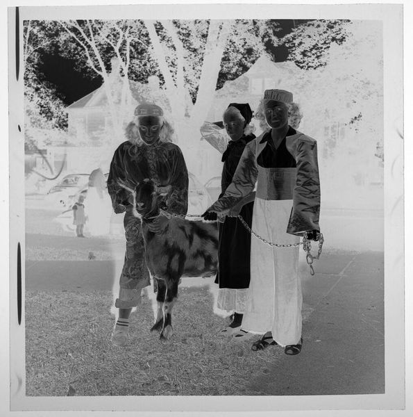 Editor: This is an untitled photograph by Jack Gould. It depicts a small child in a coat and hat standing in front of a mirror in what appears to be a store. The mood is quite somber. What do you see in this piece? Curator: The image makes me consider the labor involved in producing and selling children's clothing. The materiality of the clothing, the reflective glass, and the photographic process itself are all products of human effort and industry. What was the social context of child clothing consumption at this time? Editor: That’s a great point about the consumption aspect, especially given it appears to be a shop window. Curator: Exactly, the window presents a scene, a commodity, the child, but it hides the processes that brought it all into being. Thinking about the economic forces and social values at play here adds another layer to our understanding. Editor: I hadn’t considered the economic factors, very interesting.
