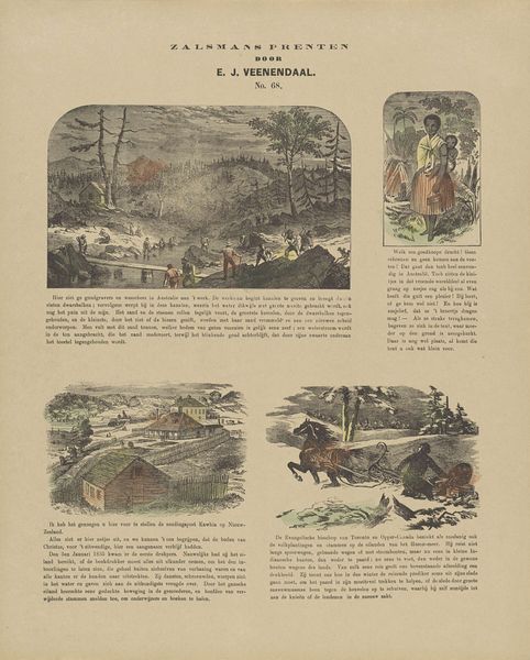 This print, titled 'Missionarissen', was created by Gerhardus Philippus Zalsman sometime in the 19th century. Though the printing process allowed for the relatively quick and easy reproduction of images, the method through which these images were originally designed and created required a great deal of time, skill and planning. The print is one of a series, as it is labeled ‘No. 60’ at the top. Each image is a different scene, and the text in between each would have been typeset, requiring a skilled compositor to arrange each letter by hand. The final print would have been made using a printing press, which applied pressure to transfer the ink from the printing plate to the paper. The scenes depicted here offer a glimpse into the history of missionary work in the Pacific. They reflect a complex interplay of culture, religion, and colonialism, each carefully etched and printed using techniques of reproduction, tied to wider social issues of labor, politics, and consumption. Ultimately, understanding the print's social and cultural context underscores the value and meaning of the artwork, challenging traditional distinctions between fine art and craft.