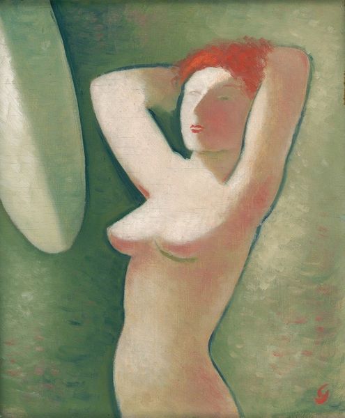 Vytautas Kairiukstis painted Vakaras Irkutske using oil on canvas. The painting’s composition is built around a central nude figure, enveloped by gentle curves and soft, diffused lighting, evoking a serene, dreamlike ambiance. Kairiukstis employs a limited palette, primarily blues, yellows, and purples, to create a harmonious yet subtly melancholic atmosphere. The semi-abstracted forms, lacking sharp definition, suggest a departure from traditional representation towards a focus on emotional and symbolic content. This echoes the broader artistic movements of the early 20th century, where artists explored the subjective experience. Notice how the figure's form and placement seem to destabilize fixed meanings, inviting a contemplation on the themes of vulnerability, beauty, and the transient nature of human experience. The canvas acts as a semiotic field, filled with signs that invite ongoing interpretation, reflecting how art constantly engages with new ways of perceiving space and representation.