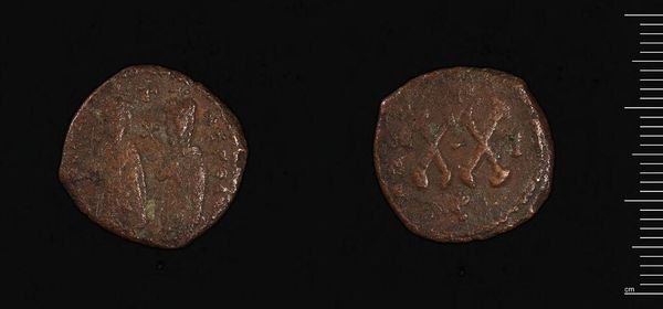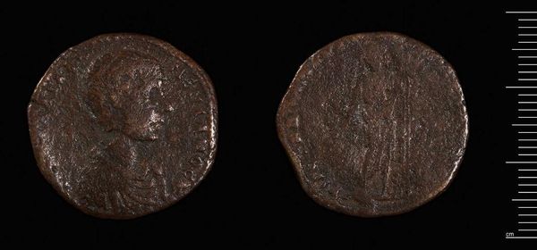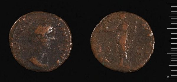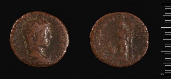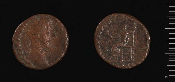 Curator: The object before us is a Dupondius, thought to be from the reign of Commodus. It is currently held in the Harvard Art Museums. Editor: It looks like it has lived a life, hasn’t it? The wear and tear makes it seem more like a relic. Curator: Indeed. The portrait of Commodus on one side and perhaps a seated Roma figure on the reverse offer insight into the symbolic representation of power and Roman ideals. It's important to consider how these images function within the broader narratives of Roman imperial authority. Editor: You know, staring at it, I almost feel a connection to the people who held it—a small piece of their world that’s somehow found its way to us. Curator: It's a powerful connection, reminding us that even the smallest objects carry the weight of history and social structure. Editor: Absolutely, and maybe that’s what makes it so compelling after all this time. Curator: A solid way to reflect on Commodus as an emperor.
