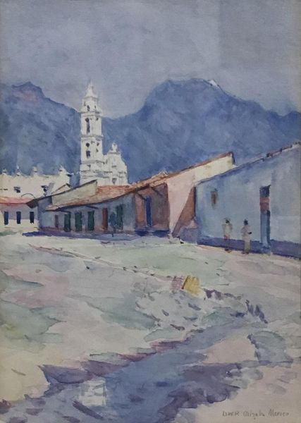 Curator: Denman Waldo Ross's watercolor "Courtyard" presents us with a scene of quiet, intimate urbanity. Editor: It feels…hushed. Like catching a glimpse of something private, softened by distance and the artist's hand. Curator: Ross, known for his theories on color and design, emphasizes process. The visible brushstrokes and layering of watercolor washes reveal the act of construction. Editor: I see that now. The way he's suggested forms rather than defined them precisely creates this lovely sense of impermanence, of fleeting beauty. The materials themselves create the mood. Curator: Precisely. Ross was interested in how artistic labor, particularly through media like watercolor, could elevate the everyday, challenging hierarchies of artistic value. Editor: There's something so genuine about the artist capturing his immediate surroundings with available materials that makes this piece so enduringly enchanting.