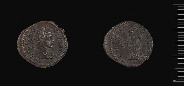 Editor: This is a Tetradrachm of Alexandria under Tacitus, currently housed at the Harvard Art Museums. It has a weathered look, but I can still make out the figures. What stories do you think it tells? Curator: Ah, yes, a coin whispers tales of emperors and empires! For me, it's a meditation on power, fleeting yet enduring, struck into metal. What do you make of the portrait, the way Tacitus chose to represent himself? Editor: I guess I see a sort of stoicism, a sense of duty etched onto his face. Is that right? Curator: Precisely! Perhaps he sought to project strength in uncertain times. Each detail, from the laurel wreath to the very font used, was a calculated move. Think of it—a tiny, portable billboard! Editor: So, this isn't just currency; it's propaganda? Curator: Every coin is propaganda of one kind or another; this one speaks of legacy. It kind of makes you want to find your own coin, doesn’t it? Editor: It does. I never thought about it this way before. Curator: That’s the magic of art! Shifting perspectives with time.