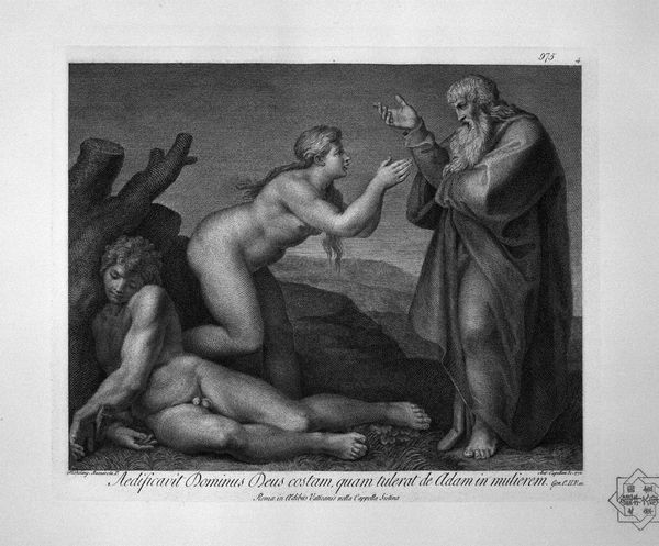 Curator: Here we have an early study for "The Baptism of Christ." It's believed to have been rendered between 1567 and 1613, but the maker remains anonymous. You'll notice that charcoal and tempera make up the medium of this arresting drawing. Editor: Arresting is right! It feels raw, like a scene caught in a moment of profound vulnerability and the start of something bigger, perhaps of hope. The figures are powerful but not idealized. Curator: Indeed. Baptism holds significant symbolic weight across numerous spiritual traditions. Water is the primary agent of purification, washing away sins, allowing for renewal, both individually and collectively. Notice, above Christ’s head, the Holy Spirit in the form of a dove. It is a symbol associated with peace. And the chorus of angels implies something transformative, divinely inspired. Editor: And John, performing the rite, is such an important symbolic character. Baptism and his ministry highlight the act of confessing sins in preparation for radical social change, like freeing marginalized communities from oppression and inequality, offering them redemption. His act challenges systems of power, doesn't it? Curator: Undoubtedly. But there’s more than just overt religious iconography present here. Look closely at the arrangement of figures. How does their positioning affect the viewer? How does the artist use the symbolic nature of chiaroscuro to lead the eye? Editor: I see the strategic placement alright. I find myself thinking of those kneeling onlookers in the foreground. Their averted gazes force me to ask questions. Whose perspectives are centered in sacred narratives? The painting evokes this sense that faith-based movements have often failed to dismantle oppressive social hierarchies, as they have struggled with their own crises. Curator: Perhaps. Yet one could also see their stances as reflecting reverence, contemplation of the enormity of the occasion. I lean towards emphasizing the symbolism inherent in these classical subjects. Editor: That’s the beautiful tension when we engage with historical works, isn’t it? What these images may reveal about collective histories and the diverse narratives of the people reflected in them, is also equally influenced by our modern-day perceptions. Curator: Absolutely. Each new observer offers a unique lens through which the work can be understood.