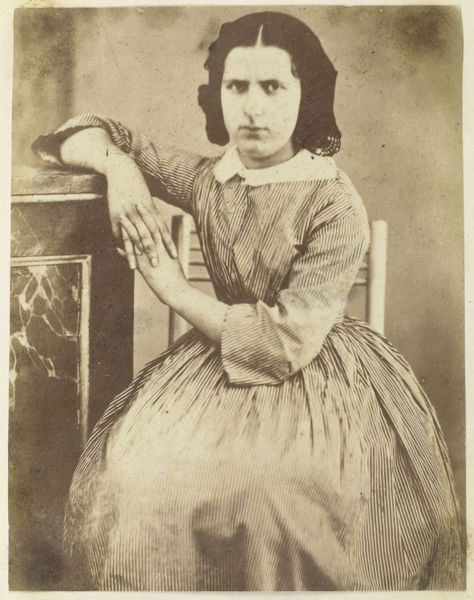Eduard Isaac Asser created this portrait of Anna Gratia Asser, likely in the mid-19th century, using early photographic techniques. This image offers a glimpse into the cultural norms of the time, particularly concerning gender and representation. Anna is formally posed, her dress and hairstyle indicative of middle-class status. The photograph itself, a relatively new medium, was rapidly becoming a tool for constructing and disseminating social identities. In the Netherlands, as elsewhere, photography studios emerged as important sites where these visual codes were negotiated and reinforced. To understand this portrait fully, we need to consider the institutional history of photography, the prevailing social structures, and the cultural values that shaped both the sitter's identity and the photographer's vision. Old studio directories, genealogical records, and social histories of the period can help us to further contextualize this image. Art, like this photograph, is always shaped by its social and institutional context.