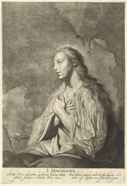 Monogrammist JVL created this piece, "Johannes de Doper," in the 17th century. It is an engraving. During the 17th century, there was great religious and political conflict. This piece depicts John the Baptist, a prominent religious figure. The androgynous and melancholic depiction of John the Baptist is striking. His gaze drifts downwards. Wrapped in fabric, he holds a staff with a white banner. The softness of his features invites an emotional response, a moment of reflection on faith, gender, and identity. Given the religious and political turmoil of the 17th century, images like this served as a focal point for devotion. By presenting an ambiguous figure, the artist perhaps expanded the circle of those who could relate to the image. This engraving asks us to consider traditional religious narratives, and, through an emotional lens, to rethink the stories of the past.