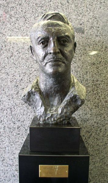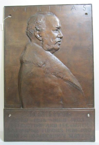 Editor: Here we have Irwin D. Hoffman's bronze sculpture, "Robert D. Hoffman," the date of which is unknown. I'm struck by the texture of the bronze. What does the use of this material signify? Curator: Consider bronze's historical associations with power and commemoration. Its durability speaks to a desire for permanence. What sort of labor would be required to produce a bronze casting of this size? Editor: I guess quite a bit of planning, not to mention the physical labor and skill involved in molding, casting, and finishing the piece. It makes me consider the value we place on such specialized craft. Curator: Exactly. By examining the material and the process of its creation, we can question the boundaries between art, craft, and industry. Editor: That’s such an interesting way to approach it, thanks! Curator: My pleasure.