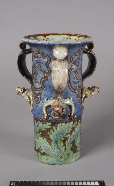 Editor: We’re looking at "Boy with Mandolin," a porcelain sculpture made between 1745 and 1760 by the Saint James’s Factory, currently residing in the Metropolitan Museum of Art. It feels incredibly delicate and precise, almost like a miniature painting brought to life. What elements stand out to you when you look at this sculpture? Curator: The immediate attraction lies in its intricate detailing and Rococo aesthetic. Note how the artist’s concern lies primarily in rendering complex surfaces. For instance, observe the posture of the boy in relation to the 'tree' he sits on, its function decorative, his position, simply put, in front of the object. Are we even considering the relationship with the small canine by the 'tree' base? Editor: I see what you mean, it's as though the components only meet tangentially and are posed almost rigidly together. What would you say about the colouring and modelling? Curator: Exactly! And, examine the colour choices: soft pastels, delicate floral patterns. Notice, for instance, how the soft pink of the roses above directly offsets the muted reds of his decorative elements of the clothing; all, importantly, placed to direct the viewer's attention centrally toward the sculpture. And observe the highly stylized depiction of the subject's form that adheres strictly to the aesthetic of artifice, with only minor attention paid to realistically scaled proportions or form of human likeness. Editor: So, you are pointing out that there are no formal attempts to render space beyond aesthetic consideration, a celebration of pure form? Curator: Precisely. Everything adheres to the aesthetic intention. The artist focuses on beauty and elegance over any attempt at realism, with no true regard for conventional modelling practices; an embodiment of Rococo sensibilities. Editor: It’s fascinating to see how analyzing the elements and their construction reveals so much about the artist's intentions. I'll never look at decorative art the same way! Curator: Indeed. By focusing on form and material, we are able to discover its rich history, artistic and otherwise.