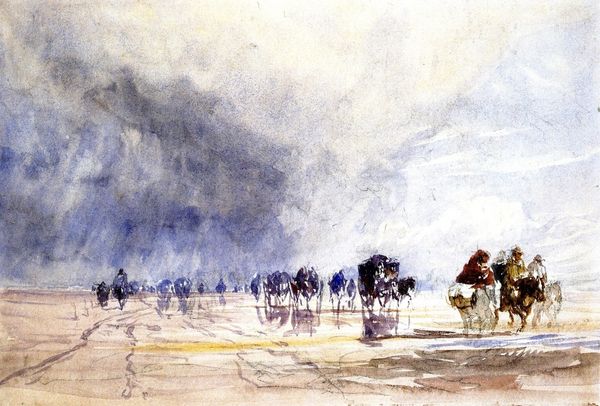 David Cox captures a stark scene with oil on canvas in his painting, "Crossing the Sands." Here, the ominous storm gathers on the horizon, a universal symbol of nature's unpredictable power, threatening to envelop the travelers. Storms, like the chaos they represent, appear across millennia of art. Think of the Deluge, as told in the Old Testament, and its many artistic renderings. These symbols are not static; their meanings evolve, reflecting societal shifts and the collective psyche. This storm, like those before, taps into our primal fears and awe of nature’s power. The birds offer a glimmer of hope, suggesting a path forward, and triggering a subconscious connection, an echo across time. In each appearance, the storm becomes more than just a weather event; it is a powerful force engaging viewers on a deep, subconscious level. The cyclical nature of these symbols continues through history. The storm, the journey, the hope, all are carried through time, resurfacing, evolving, and taking on new meanings in our shared human experience.