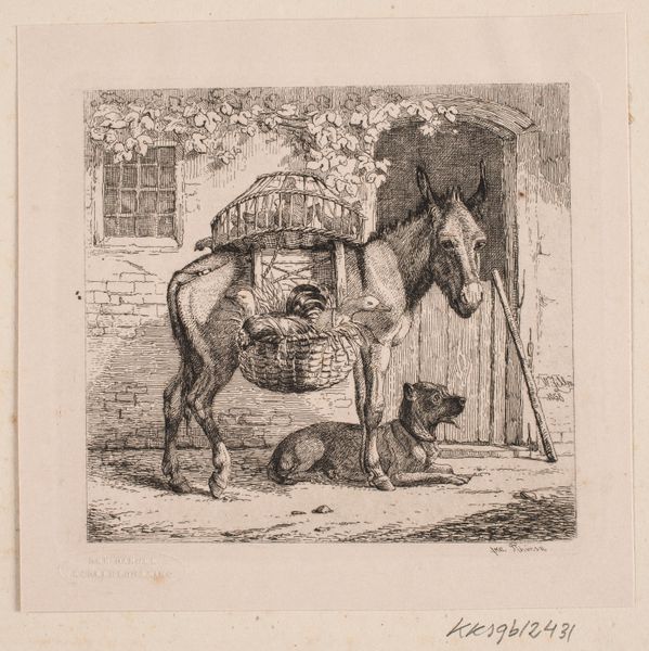Editor: Here we have "Two Calves" created in 1858 by Johannes Wilhelm Zillen, using engraving. The scene has such a quiet feel; two calves in what seems like a simple barn setting. What's your take on it? Curator: This print invites us to consider the labor and resources embedded within it. Zillen’s choice of engraving, a meticulous and time-intensive process, speaks to a commitment to craft. Think about the engraver, the quality of the metal plate, the tools used, the paper itself, and where it came from. Editor: So you are seeing the material choices as significant beyond just depicting the scene? Curator: Exactly! Look at how this scene of rural life, so seemingly straightforward, actually relies on an entire system of production and consumption. The line work itself conveys a specific understanding of labor. The textures and lines almost romanticize this simplicity. Editor: I see what you mean. There is so much detail in such a small print. How does it fit into the wider context of 19th-century art? Curator: It aligns with a broader interest in depicting everyday life, and especially rural life. Realism embraced common subject matter, but this also connects with an industrialized society. Consider how these images of the countryside circulate within a rapidly urbanizing context, potentially fulfilling a certain nostalgia or even functioning as propaganda to the working class. The rise of printmaking made such images widely accessible, driving their consumption and shaping public perception. What does this consumption of rural images by the urban elite tell us about the consumer classes? Editor: So, we're not just looking at calves; we're also looking at the labor, industry, and societal shifts that made this image possible, and the role it plays in shaping societal perceptions! It's like following a thread that connects the barn to the burgeoning factories. Curator: Precisely. Art is so often interwoven with materiality. It helps us reflect critically on not only its aesthetic qualities but also its place within a complex social and economic landscape.