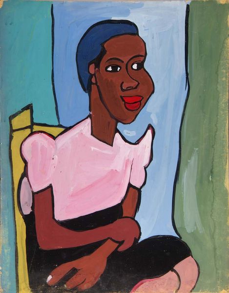 William H. Johnson painted "Girl in Blue with Turban--Deborah" using oil on paperboard. Johnson, born in South Carolina, lived through the rise of the Harlem Renaissance and the Civil Rights Movement. The portrait vibrates with identity, depicting a young Black woman adorned with a vibrant turban and a striking blue suit. Johnson's flat, bold style rejects traditional portraiture in favor of direct and expressive forms. This piece confronts the historical absence and misrepresentation of Black figures in art. The turban, often associated with exoticism, is here reclaimed as a symbol of cultural pride and individuality. The bright colors might be seen as an assertive statement against the backdrop of racial prejudice and discrimination prevalent during Johnson’s time. In her gaze, we find an intimate challenge to prevailing societal norms, emphasizing the importance of self-representation and the assertion of identity in a world that often seeks to erase it.