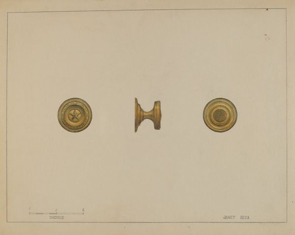 Janet Riza made this drawing of a 'Drawer Pull' on paper, at an unknown date. It feels like a study, maybe for a larger work, with the artist considering how the pull might appear straight on, or from the side, thinking in the round. The color palette here is restrained, almost monochromatic, focusing on subtle gradations of tone to describe the form and texture of the pull. You can see how the color is built up in layers to describe how light reflects off the surface of the metal. The lines are clean and sharp, but they are not clinical. They have a delicate quality that makes it seem very precious, like the artist is making a record of something beautiful. Look at the area where the handle curves, where the paper peeks through, giving it that sense of being both solid and ethereal. It reminds me a little of the drawings of Agnes Martin, there is a similar interest in line and subtle color. In the end, art is always about the conversation, the ongoing exchange of ideas across time.