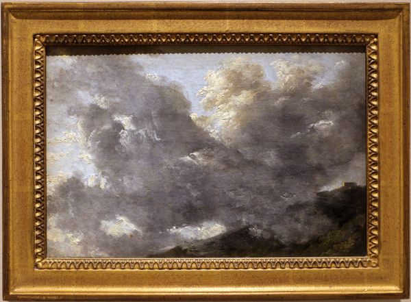 Curator: What strikes me immediately is how muted this painting is. Almost monochromatic, a study in greys and blacks. Editor: Indeed. Here we have Ralph Blakelock's "Lago al chair di luna." His mastery lies in manipulating light and shadow within this moonlit landscape, painted en plein-air using oil paint, and with very specific romanticist features. Curator: The composition is almost theatrical. Note the way the silhouetted trees frame the luminescent sky, creating a stage for the moon. Editor: It absolutely speaks to that tradition. Blakelock was deeply engaged with the aesthetics of Romanticism, valuing subjective experience above all else, expressing in this painting a strong emotional and cultural undercurrent through his utilization of impasto, generating tangible layers, literally embodying density in a medium to intensify his work, thus his aesthetic. The way chiaroscuro—that bold contrast between light and dark—plays out. What do you think that symbolizes here? Curator: One could interpret it as the struggle between good and evil, hope and despair. More simply, I read it as the beauty found in nature's cycles. Editor: These works were not painted in a vacuum. Blakelock’s struggles with mental illness deeply affected his work and recognition during his lifetime, it is almost tragic, he went commercially unrecognized as a working class romantic artist in America. Curator: Understanding that informs the reception of the artwork now. We imbue it with a biographical weight, viewing that landscape, through the socio-political lens of the artist. Yet it’s also worth returning to the pure visual impact—the dark brushstrokes balanced against the pale moonlight. Editor: I appreciate how we are challenged to appreciate how societal frameworks shape our engagement with art while equally acknowledging the piece’s intrinsic aesthetic power. Thank you for bringing attention to the power of darkness and the symbolic representation found within. Curator: Agreed, these conversations enhance our engagement with art, shedding light on their intrinsic properties. Thank you for sharing your perspective, and I must say that it’s made me reflect in a new way in regards to Blakelock's approach in his art and overall work.