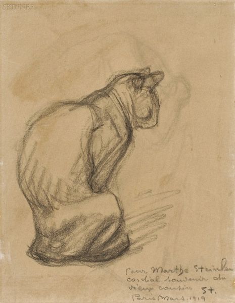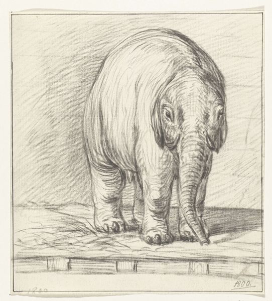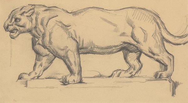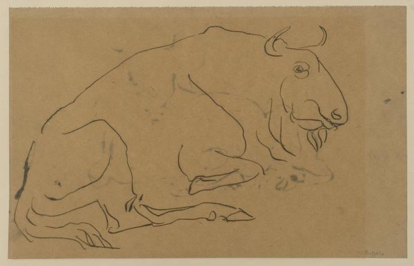 Curator: Here we have Edvard Munch's lithograph and pencil drawing "Bjørn", dating from 1908-1909, which is held at the SMK, the National Gallery of Denmark. Editor: My initial reaction is to the drawing's raw energy! The sketchiness of the lines gives the bear a powerful sense of movement. Curator: Indeed. It's fascinating to see Munch engaging with animal studies in this way, considering the socio-political context of the time. Artists were grappling with ideas about nature and humanity's place within it. His depiction here may speak to broader societal anxieties. Editor: Absolutely. The formal elements, though—the varying weight of the pencil lines, the areas of dense hatching versus the almost ethereal lightness of the fur, the strategic use of the blank page—all these contribute to an immediate sense of the animal's weight and texture. Curator: Considering the lithographic process, we might ask, what drove Munch to explore such a seemingly simple subject? The period he produced this piece in involved Munch exploring themes surrounding the psychological weight that impacted him during this part of his career. Editor: To your point on process, the interplay between the immediacy of the pencil sketch and the lithographic printmaking allows for capturing something fleeting but fundamental to the artist, the character and inherent essence of form. I feel like the form is speaking very loud here, or rather, growling at me from the image. Curator: And how does it feel when it "growls" at you? Editor: Formally speaking, the gesture, expression. The bear looms like a large specter or totem. A spirit. Curator: These emotional readings remind us that artworks have their own social lives, often changing alongside us and influencing subsequent generations of viewers in complex ways. Editor: And looking closely at his mark making reminds us how even simple sketches can convey a wealth of textural information. Curator: This work underscores the capacity of art to provoke introspection and contemplation, and demonstrates art's integral place within broader society. Editor: A remarkable work that offers much food for thought indeed.