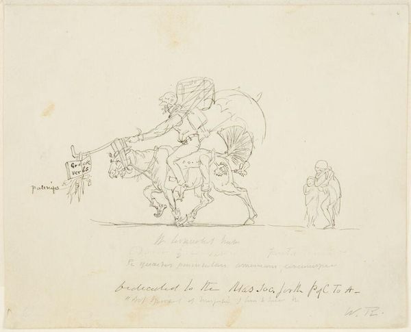 Editor: Here we have Washington Allston's "Male Figure with a Sword; Head of a Woman, for 'Fairies on the Seashore...'," a pencil sketch. It feels so fleeting, almost dreamlike. What do you see in this piece? Curator: It's like catching a glimpse of a story unfolding, isn’t it? Allston, with his romantic spirit, was fascinated by the ethereal. Notice how the figures aren’t quite finished, leaving room for our imaginations to fill in the gaps. It feels like a memory, or a stage direction. Editor: That's a great point. It is less about what is present and more about a suggested narrative. Curator: Exactly! Allston is inviting us into the creative process. It reminds us that art isn't always about perfect representation but about capturing a feeling, a mood. Editor: I hadn’t thought about it that way before. It’s looser, more suggestive, like a whispered secret. Curator: And sometimes, those whispers are the most profound stories we tell ourselves.