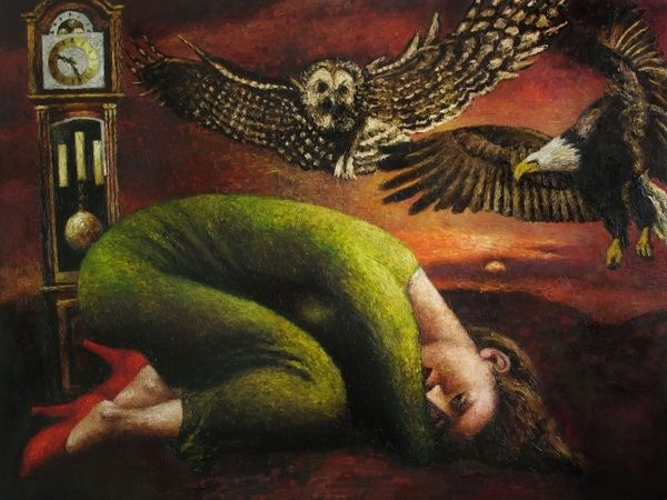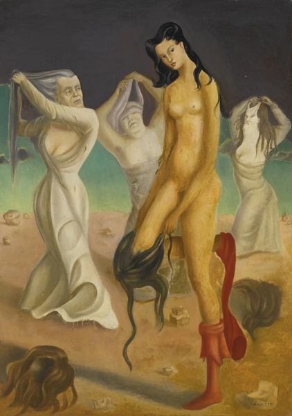 Leonor Fini made Gardienne des phoenix using oil on canvas, though the date is unknown. The color palette is striking, dominated by earthy reds and oranges, creating a warm, almost ominous atmosphere, while her brushwork is meticulous, with smooth gradations of color that build up the otherworldly scene. The materiality of this work really grabs you. The paint is applied in thin, careful layers, creating a smooth surface that almost feels like skin, while the fine feathery details of the birds contrast with the solid drapery of the central figure. The brushstrokes are so delicate, almost invisible, giving the piece a dreamlike quality. Look at the folds of the fabric, each one carefully rendered to create a sense of depth and volume. This painting reminds me a little of Remedios Varo in its precise rendering of imagined worlds, but Fini’s has this brooding quality that’s all her own. Art's like a conversation, right? Each artist adds their own voice to the mix, creating something new and strange. It's not about having one right answer. It’s about letting all these different ideas and feelings swirl around and seeing what comes out.