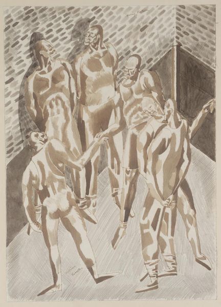 Editor: So, this is Alexander Stavenitz's "Breadline," likely from around 1933. It looks like it's made with graphite and charcoal, or perhaps a print of a charcoal drawing. The overall effect is really somber. The figures seem to melt into the shadows. What do you see in this piece, looking at it from your perspective? Curator: I see a powerful statement on social and economic inequality. Considering it was made around 1933, it's impossible to ignore the context of the Great Depression. Stavenitz captures the desperation and the dehumanization inherent in systems that fail to provide for basic human needs. What does it tell us that the figures are essentially faceless? Editor: That's a good point; it makes them more universal, less individual, right? Almost like symbols of the suffering masses. Curator: Precisely. And look at their clothes, the heavy, dark fabric that seems to weigh them down, mirroring the emotional burden they carry. This connects to wider art historical concerns with representation of labour and class. The artist chose a very specific medium. Why do you think they used these materials? Editor: Perhaps because charcoal and graphite lend themselves to a gritty, realistic portrayal? Curator: Yes, absolutely. But it's also important to think about access. During times of economic hardship, readily available, inexpensive materials would have been crucial for artists wanting to document social realities. It is inherently accessible in ways that something like oil on canvas wasn’t. How does the concept of access change our interpretation of the work? Editor: Wow, that's insightful. I hadn’t thought about the choice of material in that light. It really deepens the connection to the historical context. Curator: It's about situating the work within the realities it depicts. It encourages dialogue. What about you – has your perception shifted? Editor: Definitely. I now see "Breadline" as more than just a depiction of hardship, but as a powerful commentary on systemic failures and resilience through shared experience. Thanks.