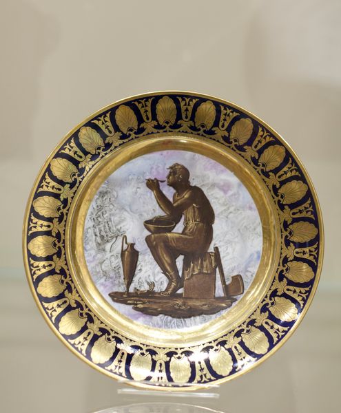 This plate was made at the Sèvres Porcelain Factory, established in France in 1756. It presents a neoclassical image, embodying the 18th-century fascination with ancient Greece and Rome. The factory existed in a society marked by rigid class distinctions, royal patronage, and the stirrings of revolutionary thought. The plate's imagery and material speak to the complex intersection of art, power, and identity in pre-revolutionary France. The idealized male figure echoes classical sculptures, reflecting a desire to emulate the perceived harmony and order of ancient civilizations. Yet, this idealized form also masks the social realities of the time, marked by inequality and oppression. It invites us to reflect on the ways in which classical ideals were selectively appropriated to serve the interests of the elite. The plate is both an object of beauty and a carrier of cultural values. It is a reminder of the intricate relationships between art, identity, and history.