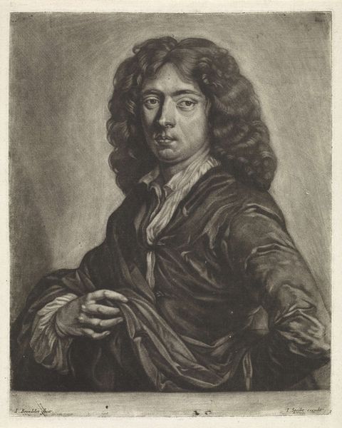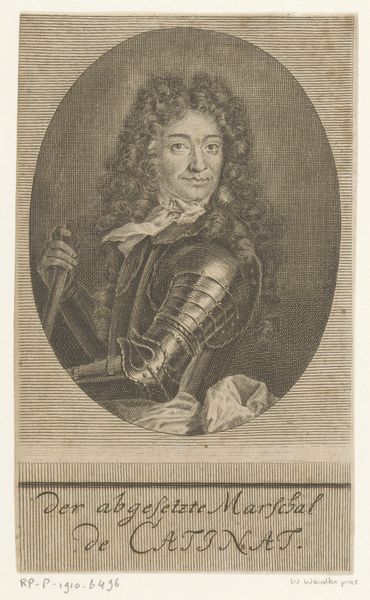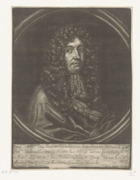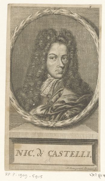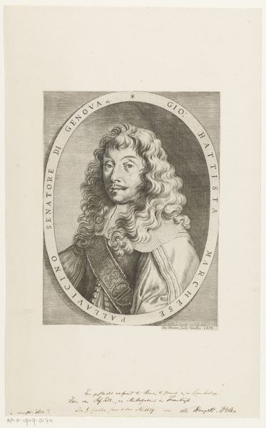 Editor: This is "Portret van Christiaan Huygens," an engraving from the 1760s by Jean-Charles François. It’s fascinating how much detail the artist managed to capture using just lines. What do you see in this piece, especially considering its historical context? Curator: This portrait is more than just an image; it's a representation of power and intellectual authority within a very specific societal framework. Huygens, a prominent scientist, is portrayed in a style that speaks volumes about the social hierarchies of the 18th century. The Baroque aesthetic, with its emphasis on grandeur and detail, was often used to legitimize the elite. Editor: So, the choice of Baroque style wasn't just about aesthetics, but also about reinforcing social status? Curator: Exactly. Think about how portraits like these were used. They were tools for constructing and maintaining a particular image of authority. They also speak to the power dynamics of patronage during that era. Who commissioned the work? For what purpose? Whose stories are being told and whose are being deliberately erased? Editor: That's interesting. I hadn’t considered the social implications of the artistic style. It makes me wonder how Huygens himself would have felt about being represented in this way, given his scientific leanings. Curator: That's a crucial question to ponder. Considering the ongoing debate about representation, how do we grapple with portraits of historical figures whose legacies are intertwined with complex social structures? Editor: This makes me rethink how portraits can be read, not just as representations of individuals, but as reflections of broader power dynamics. Curator: Precisely! Art allows us a visual language to uncover the nuances of social structures and power.