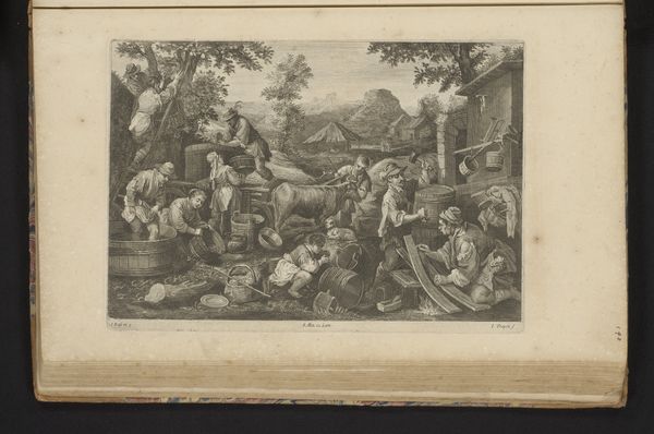 Jan van Ossenbeeck’s ‘Winter’ presents a detailed scene etched with fine lines that define a stark, wintry landscape and its inhabitants. The tonal range, achieved through meticulous hatching and cross-hatching, creates a textural depth that invites the viewer to examine the scene closely. Ossenbeeck constructs a composition where the figures are grouped into distinct clusters, each engaged in separate activities that speak to the season's demands. The structural arrangement of the figures, architecture and landscape elements invite you to consider how the composition's formal structure mirrors the social structure of labor and community during winter. The etching uses signs and symbols like the bare trees and huddled figures. The spatial organization and contrasts between light and shadow destabilize established meanings around winter, challenging you to consider the season not just as a time of hardship, but also as one that brings communities together through labor and resilience.
