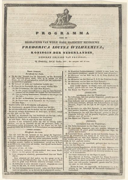 This is a printed program designed by C.A. Spin & Zoon, announcing a triumphal parade in Amsterdam, commemorating the 50th year of Dutch independence. The visual structure hinges on a symmetrical arrangement, with the bold, stylized typography of "TRIOMETOGT" commanding the center. The elaborate framework of ornamental borders and heraldic symbols creates a visual hierarchy, drawing the eye from the regal crest at the top down to the textual details. The choice of a monochromatic palette further accentuates the graphic elements, emphasizing line, texture, and the interplay of positive and negative space. The program, as a textual and visual artifact, participates in a semiotic exchange. The font style, layout, and decorative motifs are all signs which evoke cultural values of nationhood and historical significance. The formal design elements create a sense of solemnity, order and national pride. Consider the program’s typography; it is not merely functional but also aesthetic. It functions to create a sense of cultural identity and collective memory. The design choices here are not arbitrary but play a crucial role in shaping our understanding of this historical event.