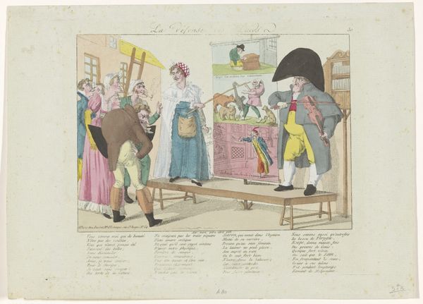 This print, "Driekoningenfeest," was made by M. Hemeleers-van Houter, using etching and possibly some engraving to depict the celebration of the Epiphany. Look closely, and you'll see how the etched lines define the forms, from the children playing to the architecture in the background. The artist then added color, likely by hand, to bring the scene to life. It’s interesting to consider this print in terms of reproduction. Prints like this were produced using relatively inexpensive methods, making images available to a wide audience. This print captures a specific cultural moment. The image then becomes a commodity, participating in a much larger system of production and consumption. Consider the labor involved in creating this print, from the artist who designed the image to the printmakers who reproduced it. It is a collaborative process, and one deeply embedded in the social and economic context of its time. By considering the materials, the making, and the context of this artwork, we gain a richer understanding of its meaning and significance.
