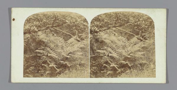 Editor: So this is “Varens in de bedding van een beek te Derbyshire”, or “Ferns in the bed of a stream in Derbyshire,” dating from between 1850 and 1880. It's a photograph, a gelatin-silver print, credited to H. Petschler & Co. It feels like a peek into a secret world, almost primordial. What catches your eye about it? Curator: Oh, it's a lovely bit of Victoriana! It takes me back to when capturing nature's quiet moments became a sort of national pastime. This isn't just a snapshot; it’s pictorialism, with an intent to capture the feel of being *there*. You can almost smell the damp earth and hear the trickling water. What do you think makes it more than just a record? Editor: I guess the composition is part of it, how the ferns are arranged and the soft focus on the background… Is it about elevating photography to the level of painting? Curator: Exactly! They’re not just documenting ferns; they're curating an experience, a feeling. Notice the depth – it’s subtle but inviting. Photography at this time was proving itself as art, not just a recording tool, do you feel drawn into this quiet space? Editor: Definitely. There's a stillness to it, but also a sense of vibrant life. I almost want to step into the picture. Curator: That's the magic! It's about finding beauty in the mundane, and presenting it in a way that stirs something within us. It’s about atmosphere, which I see in this. What a perfect slice of time. Editor: I see what you mean! It's not just a picture, it's a whole mood. Curator: Precisely. We’re invited to pause and appreciate. The light, the composition – it all sings together, doesn't it?