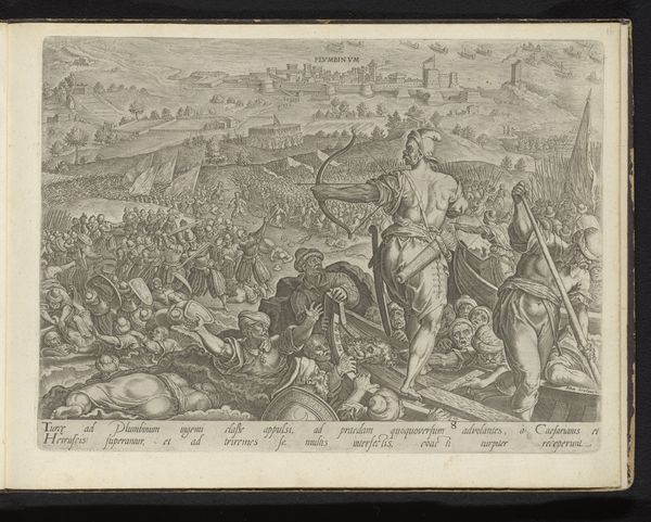 This engraving by Gilliam van der Gouwen, made around 1740, depicts the Stoning of Achan. The eye is immediately drawn to the foreground, where a figure, possibly Joshua, presides over the scene with a commanding gesture. The composition is structured to create a sense of depth and drama. Note how the artist uses tightly packed figures in the middle ground and how they lead to the distant, mountainous landscape. The landscape serves not just as a backdrop but amplifies the scale of human actions. The lines here are sharply defined, contributing to the graphic quality of the print. This creates a sense of dynamism, which evokes the violence of the event. It prompts questions about the nature of justice, community, and individual fate. The print's formal elements work together to evoke the emotional and philosophical weight of the biblical narrative.