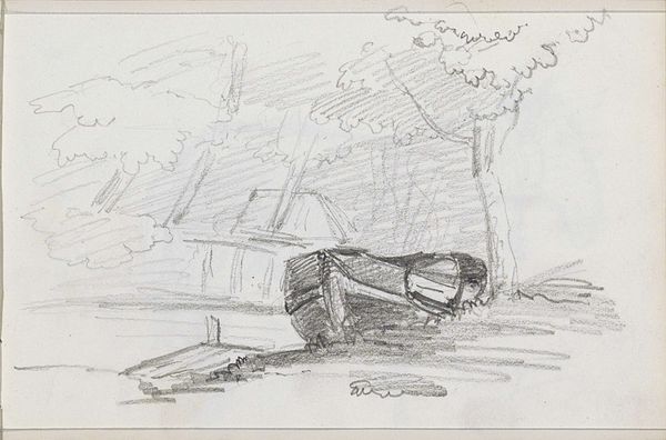 Curator: Standing before us is "Housing Problem," a 1937 print crafted by Grace Albee. I’m immediately drawn to how evocative and somber it feels. Like a memory half-submerged. Editor: I see how the stark contrasts in light and shadow contribute to a somber mood, as you say. Albee's linework, especially, creates a distinct tension; it's as if the piece is fragmented, contained almost, by the geometry of the wire fence slicing diagonally through the scene. The animals appear trapped. Curator: Yes! Those forlorn-looking goats huddled under what appears to be an abandoned, decaying boat... There's a vulnerability in the raw, exposed pen sketches and realistic forms mixed with such deliberate linework. Editor: Exactly. The visual structure is significant. Notice how the repetitive lines mimicking rainfall obscure our view, reinforcing the sense of enclosure? Albee uses line both to define the literal space and evoke a psychological barrier, maybe between the viewer and the "problem" referenced in the title. The overall form of the image feels almost claustrophobic; every quadrant packed with detail. Curator: Albee really puts us in this wet, raw place—makes us question what sort of hardship the animal face day after day. The fence... is it a metaphor? Barring access or providing scant protection? I am getting a stark visual punch with her depiction. Editor: One could argue it's both! As a semiotic device, the fence is loaded—it symbolizes division and the arbitrary limits of ownership and resources. Moreover, Albee’s medium, printmaking, introduces a mechanical reproducibility that comments subtly on the mass scale of societal issues surrounding housing, echoing back to this ‘Housing Problem’ during the 1930s and The Great Depression in America. Curator: Thinking of the context makes it even sadder; her print makes the issue real. To bring those massive statistics into sharp focus in an artistic expression... wow. Makes you wonder how artists choose to capture reality and try to change society's perception. Editor: A crucial intersection: the artistic form conveying the reality. Albee invites us to not just see, but to critically assess structures—both literal and metaphorical. Curator: Exactly— it pushes us to confront difficult questions around shelter and security that stay long after one views her piece. Editor: Indeed, the enduring power of formal constraints—a wire fence—and its cultural implications; "Housing Problem" still demands examination.