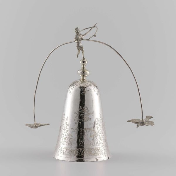This is a vleeskroon, or meat crown, made by Wessel Jansen, most likely in the Netherlands sometime before his death in 1696. It’s made of silver. This object speaks to a time when food preservation was a real concern. It would have been hung above meat to keep flies away. The open structure allows for air circulation, while the delicate silver material signals wealth and status. Crafting something so utilitarian from a precious metal elevates its purpose. Silversmithing traditions involve skills like hammering, soldering, and engraving, all requiring precision and expertise. Jansen would have needed to understand the properties of the material to form it into such an airy cage. The vleeskroon demonstrates how everyday life could be intertwined with artistic expression, blurring the lines between the functional and the decorative. It’s a reminder that even the most practical objects can be infused with cultural meaning and skilled artistry.