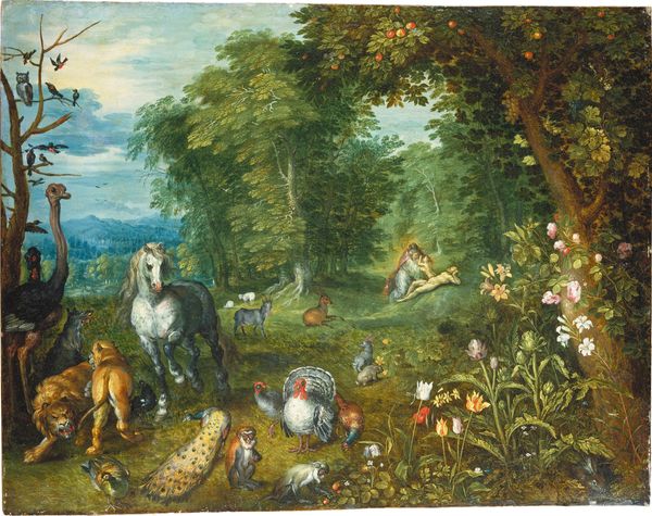 Pieter Brueghel the Younger painted "El Paraíso Terrenal Or Earthly Paradise" in the late 16th or early 17th century. Born into a world of stark religious divides, Brueghel the Younger navigated the tensions between his family's artistic legacy and the societal norms of his time. At first glance, this piece evokes a sense of harmony: lions lie with lambs, birds of every feather populate the trees. But let's consider the cultural context. Brueghel was painting during a period of religious strife, and the fantasy of an earthly paradise is at odds with the religious conflict of the time. Are we looking at a nostalgic longing for a pre-lapsarian state, or a subtle commentary on the impossibility of such harmony in a world fractured by faith? What does it mean to depict a space untouched by the conflicts of the time? The painting becomes a poignant reflection on the human condition, marked by both an enduring desire for peace and an acute awareness of its elusiveness.