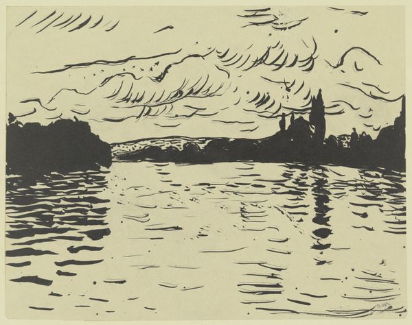 Editor: Emil Nolde's "Fischdampfer," or "Fish Steamboat," created around 1910. It's a striking print—linocut, I believe. The stark contrast and crude lines give it a raw, almost industrial feel, yet the subject is this vessel on the sea. What do you make of this unusual juxtaposition? Curator: The roughness you’re observing is key. Nolde wasn’t after bourgeois perfection; he embraced the imperfections inherent in the linocut process. It speaks volumes about artistic labor. Consider, the act of carving that block itself--a physically demanding process to render an image, one deeply involved with labor and industrial fishing. What kind of statement do you think he's making with his deliberate lack of polish? Editor: So, by choosing this process he's drawing attention to the labor, making a connection between the material of the artwork and the materiality of fishing itself, like the lives of the fishermen who work those steamboats? It's a rejection of idealized art in favor of something grounded. Curator: Precisely. Think about the distribution of prints, too. They are easily reproduced, easily consumed – widening the reach of a statement piece in ways painting may not achieve. What social circles would originally consume such art, and what did their relationship with production and the act of sailing vessels infer from that time and art piece? Editor: That makes a lot of sense. I'd never really considered the social implications of choosing printmaking like that. It's not just about aesthetics; it's about making art accessible and relevant to broader social realities. I definitely see Nolde's "Fischdampfer" in a new light now. Curator: Indeed. Considering materiality in the artmaking and social background adds many layers. We must challenge boundaries between consumption, artistic labor, and craft, challenging the norm within art appreciation.
