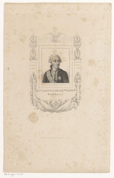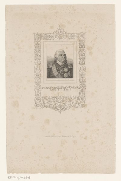 Curator: Before us hangs "Portret van Tycho Brahe," an engraving housed here at the Rijksmuseum. Its creation is situated sometime between 1775 and 1834, offering us a glimpse into how Brahe was visually memorialized. Editor: The aged paper and faded ink lend it such a somber, reflective air. The man’s intense gaze from within that oval frame certainly holds your attention despite the simplicity. Curator: Indeed. Tycho Brahe's image became a powerful symbol within scientific circles and broader cultural narratives, particularly given his complex socio-political position as a nobleman deeply invested in scientific pursuits. He represents the shift occurring between traditional authority and nascent empirical methodology. Editor: Absolutely. The feathered cap, the elaborate ruff, the inscription below the portrait, it’s all communicating status and intellect. It’s as though the engraver carefully chose elements to embody Brahe’s layered identity. We also should consider how printed images disseminated scientific authority. This portrait would likely have graced the pages of scholarly works or perhaps even circulated as a single, revered image amongst his followers. The visual cues create almost an iconic representation. Curator: Yes, and the very act of creating and circulating such images reflects a certain power dynamic, where portraying individuals becomes a way of inscribing them into the annals of history and conferring a particular kind of legacy, or agenda, I'd argue. Editor: It’s also interesting to consider what specific qualities the artist chose to amplify about Tycho Brahe—perhaps courage, wisdom, an inquisitive nature. These become attributes now inextricably linked with his name. We see history not just as factual narrative but also as a constructed image. Curator: Looking closely, this piece speaks volumes not only about Tycho Brahe but also about the methods and politics involved in crafting historical figures through art, echoing societal values and power relations of the era. Editor: Agreed, and analyzing it further unlocks dialogues around image-making, commemoration, and the encoding of cultural meaning through artistic representation across time.