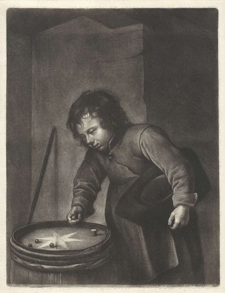 Editor: This is *Boy with a Dove*, a 1766 engraving by Charles Phillips, after a painting by Francesco Mazzola. I'm immediately struck by how gentle the boy's expression is as he cradles the bird. How do you interpret the symbolism at play in this work? Curator: The dove is heavy with symbolism. Historically, it represents peace, innocence, and the Holy Spirit in Christian iconography. But here, its meaning might be more nuanced. Consider the boy's tender grasp: is he protecting the dove, or is he confining it? Editor: That’s an interesting point. I hadn't thought about the potential for confinement. Does that suggest anything about the boy's own situation? Curator: Perhaps. Look at the setting: he's near a window, another dove behind it. It could represent his own aspirations or limitations within his social context. Images create dialogues with their viewers – what unspoken narratives do you perceive in this arrangement? Editor: So the two doves might signify freedom and constraint, perhaps reflecting on social roles and expectations during that era? Curator: Exactly. Phillips isn't just depicting a child and a bird; he is invoking centuries of symbolic language that plays on our shared cultural memory. Notice how the delicate engraving technique amplifies the sensitivity and grace linked to both the boy and the doves. Editor: It's amazing how a seemingly simple image can hold so many layers of meaning, especially when seen through the lens of historical symbolism. Thanks for your insight! Curator: The power of art lies in its capacity to constantly resonate across time and experience, each viewer enriching the artwork with their own personal symbolism.