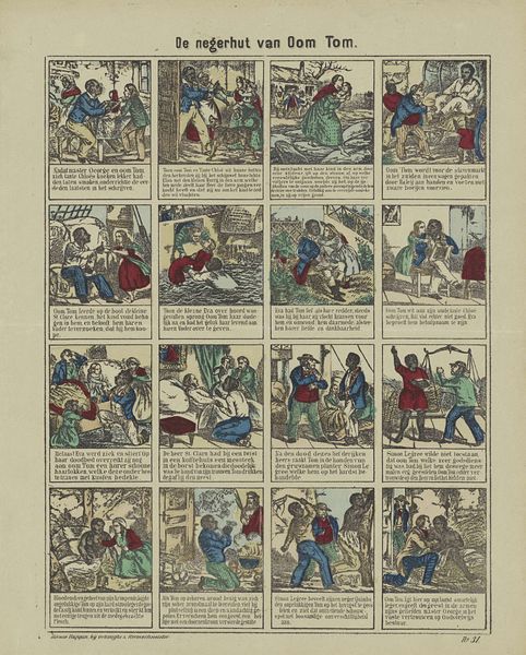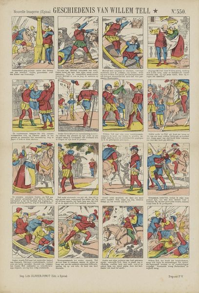 This print of 'Hansworst en de kaporaal' by Pellerin & Cie. uses thin washes of watercolor to bring the story to life. Look at how the colors aren’t blended much, and seem to sit on the surface, more like coloring than painting. The colors are like the set design for a play, theatrical and even a bit goofy. The artist is really enjoying the process of building this little stage, it’s more about the action of making it than being too careful. The drawing is economical but lively, like quick notations of gestures and poses. You can see the artist thinking with their hand as they go. Look at how the green of the foliage repeats in the outfits of the figures. There is a real sense of rhythm, almost like musical notation. It reminds me of someone like Red Grooms in its playful approach to figuration. Ultimately, the painting feels unresolved, but that’s what makes it so engaging. It’s not about being perfect, it’s about the joy of making.