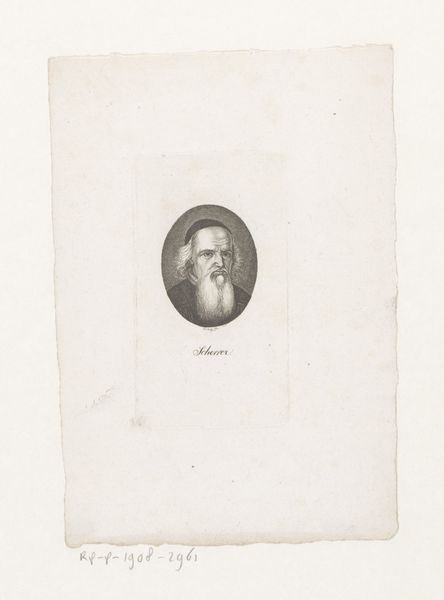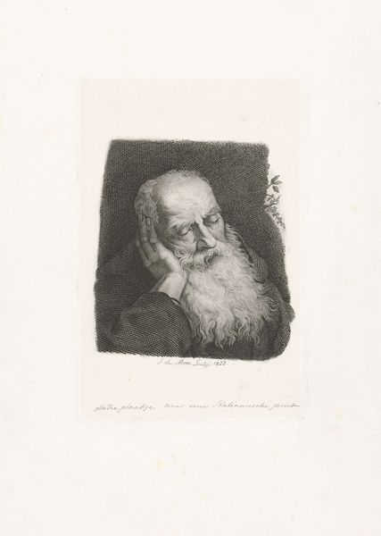 Editor: Here we have Nikolay Semyonovich Mosolov's "Portrait of an Old Man," created sometime between 1857 and 1914, using printmaking techniques. It’s a somber portrait, the greyscale giving it an austere feel. What stands out to you when you look at this piece? Curator: I'm drawn to consider the physical process of creating this print. We're looking at the results of labor, the manipulation of materials – the plate, the ink, the paper. How does the choice of printmaking as a medium impact the way we view this man? Was printmaking meant to democratize images, and therefore make him relatable? Editor: That's interesting. I hadn't considered the implications of choosing printmaking. So, it is a portrait and could highlight status, but is it also trying to make this subject accessible? Curator: Precisely! What was the artist trying to achieve through that conscious decision of reproducibility? The consumption of images, their distribution... these were all radically shifting during this period. The rise of printmaking coincides with industrialization. Were these affordable portraits meant to celebrate the working class or offer a commentary on labor, I wonder? Editor: It almost flattens him, making him anonymous through the mechanical means of production...a product, perhaps? I hadn’t thought about portraits that way before. Curator: Absolutely. And the lack of vibrant colors… the artist chose, possibly deliberately, to deprive the work of material allure? It brings the process to the foreground and, in effect, can remove him of individual prestige. Editor: So, understanding the process allows us to see the artwork less as a depiction of one particular old man and more as an exploration of labour and status within a rapidly industrializing society. Curator: Precisely. The social context becomes paramount. Seeing art as embedded in, not separate from, the material world is eye-opening, right? Editor: It definitely changes the way I view portraits; I see him as a worker but maybe everyone's just a worker when you get down to the means of producing artwork!
