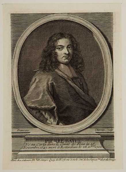 Curator: Welcome. Before us is "Portret van William Dobson," an intaglio print made between 1730 and 1762 by Alexander Bannerman. Editor: It has such a severe feeling; even framed in the oval, he seems imposing, almost glaring. The dark shading gives it a stark quality, which certainly affects the overall tone. Curator: The engraving medium lends itself to the stark contrasts that define the baroque and academic styles it embodies. Bannerman was replicating Dobson’s likeness and echoing Dobson’s artistic importance to later audiences. It speaks to how art history is consciously built. Editor: Absolutely. The "old engraving style" really contributes to that air of authority. It's interesting to consider the socio-political statement embedded here, even if unconsciously. Is it just the elite immortalizing each other? Who benefits from this perpetuation of specific images and power structures? Curator: Portraits like these often circulated among an educated elite, reaffirming status and contributing to a shared sense of cultural identity. Dissemination of the image through print democratizes it while subtly enshrining that power dynamic, doesn't it? Bannerman's technique helped solidify this perception. Editor: Right, that replication underscores that tension: wider accessibility with underlying themes of exclusivity. I find it’s key to constantly ask how such artistic choices contribute to these power narratives, which helps question those old "academic" or "historical" framings. Curator: Precisely. It brings visibility to artists while also perpetuating or contesting ideals that uphold the structure of the elites, giving form and promoting visibility through visual narratives that have material consequence for wider culture. Editor: Definitely food for thought. It reminds me to reflect upon art's role in both mirroring and actively shaping our world. Curator: I agree, the power in these portraits remains considerable.