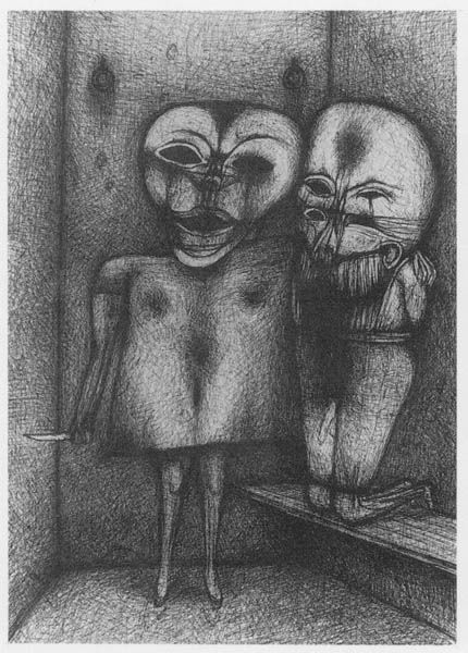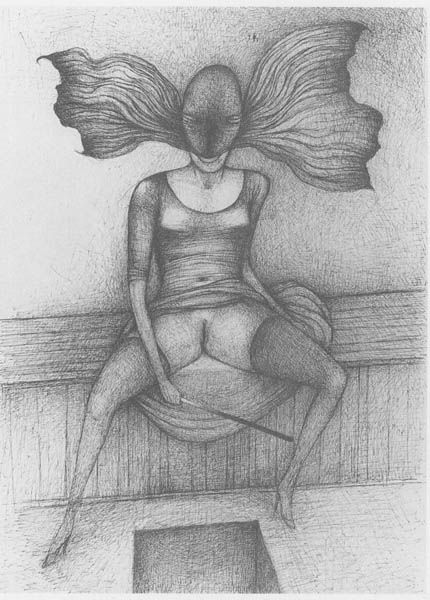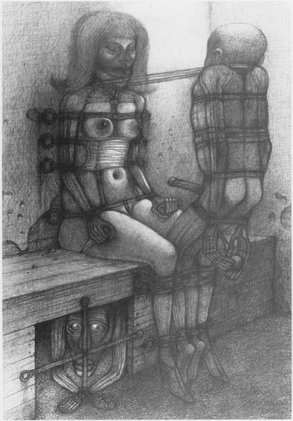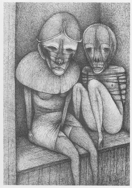 This untitled drawing was made by the Polish artist Zdzislaw Beksinski, though its exact date is unknown. Beksinski’s art is filled with surreal and often disturbing imagery, reflecting a deep engagement with themes of existential dread. Here, we see a seated figure with abstracted features, suspended by ropes. The setting is bleak, the lines are dark and claustrophobic. Beksinski's Poland was a society suffering under Soviet control, with limited individual freedoms. The social effects of the Second World War were still clearly felt in the artist's lifetime, a trauma that he would have experienced as a young man. It is difficult not to interpret the artist's dark mood as an expression of these conditions. Is the figure a victim or is she in control? Perhaps the ambiguity of this image is its most powerful quality. Historians of art and culture can help us understand these works, by providing insight into the conditions that shaped Beksinski's dark vision.
