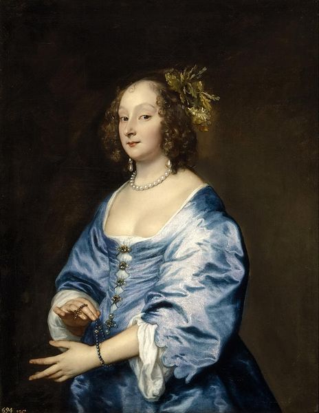 Curator: Wallerant Vaillant, the artist, rendered this oil-on-canvas in 1671. The painting is titled "Maria van Oosterwijck (1630-93). Flower painter." Editor: What immediately grabs me is the way she’s holding the palette and the open book; there's a palpable sense of intellectual curiosity in this self-portrait. The colors feel subdued, almost…dreamlike. Curator: Yes, subdued is a great word. Baroque paintings often carry allegorical symbolism. Vaillant is suggesting something deeper. Notice the book she holds, it could signify either the foundation of knowledge for her art or even a record of her financial transactions for completed artwork, given it seems empty. Editor: Oh, that's clever! It feels as though the artist subtly acknowledges the business side, like, yes, artistry, but also survival. Curator: And the palette itself, displayed almost as a badge of honor or empowerment, marks Maria as not merely a subject but as the master artisan in her own right. In her time, that was no simple feat. It serves to make the personal professional and elevates her place in the artistic and societal hierarchy. Editor: Definitely! There's such quiet confidence in her gaze. You get a sense of this unflappable woman saying, “Yes, I'm here. I’m making art. Deal with it." The composition with the open book hints to this silent declaration of self awareness and artistic expression. It reflects something far deeper than just vanity. Curator: That's the magic, isn't it? Even in what could have been just a traditional Baroque portrait, she commands both artistic reverence and, really, a statement of defiance against a patriarchal status quo. Editor: It’s really something. Every time I see this painting, I understand a little bit more about the weight of creative self-definition. Curator: Agreed. Vaillant encapsulates that struggle, that subtle assertion of self. It's quietly revolutionary.